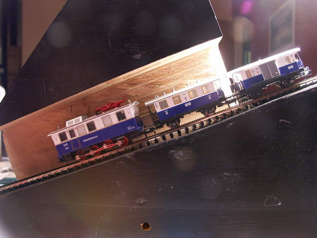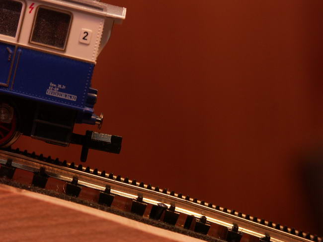 In the course of Sprocket BahN I hoped to sidestep all the problems described above. I encountered yet another one: The cog meshing with the rack converts force along the line of the track into a lifting force that almost overpowers the weight from the steel masses in the locomotive, resulting in the loco having greatly increased sensitivity to small particles or discontinuities on the track. It regularly loses electrical contact with one or other rail and "sticks".