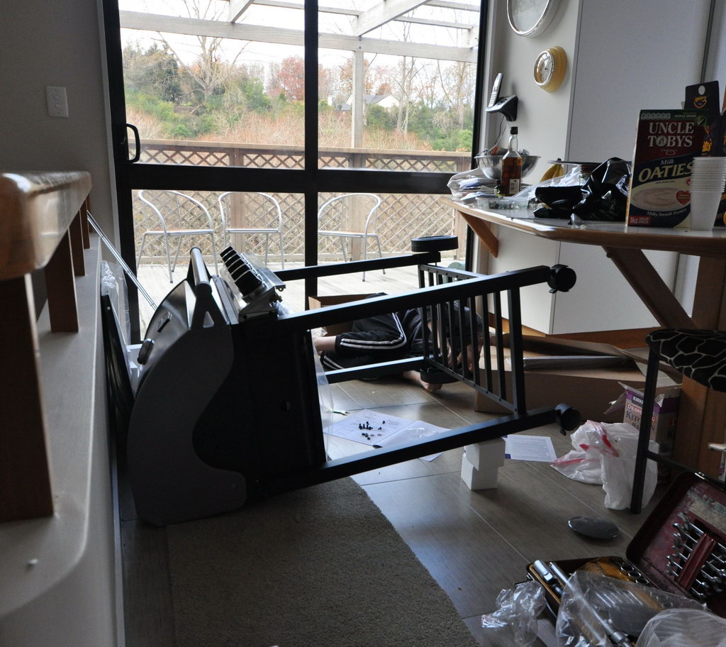 This is me putting the wheels on the new BBQ. I am looking forward to eating on the balcony, at least