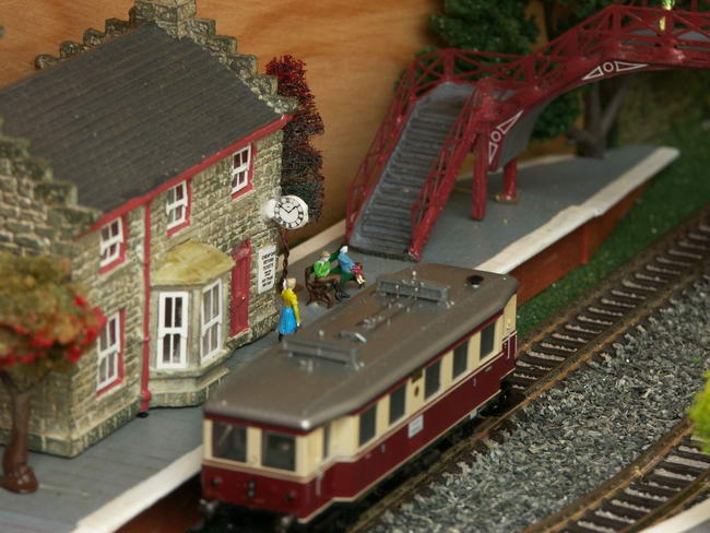 Close-up of the station showing the Minitrix 12313.