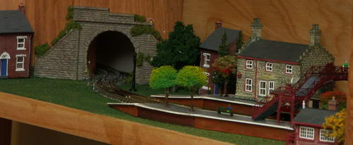 All the buildings, stations sections, and the footbridge come from the outrageously-cute Hornby "Lyddle End" range, purchased from Hattons of Liverpool, UK. The trees are either made with Woodland Scenics supplies or purchased from a well-known e-bay tree vendor. The signal is home-constructed with LEDs. The figures are home painted from the Preiser range. The rolling stock visible are railcars from Fleischmann (an 87400) and Minitrix (Trix 12313), both DCC-enabled from Reynaulds. All the intelligent modules are based on Microchip's PIC line of embedded microcontrollers, programmed in Hitech PIC C.