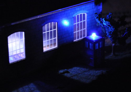 The DCC decision makes wiring easy: Absolutely everything is powered through the rails, including the small computer that flashes the TARDIS light in sawtooth fashion.