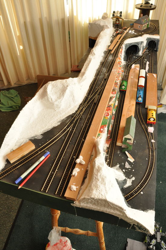 This is the part-finished layout in our loungeroom, set up to do some station-sizing.