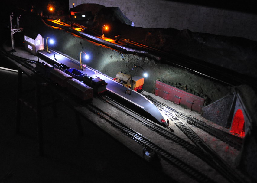 ...but it is designed to look good at night, with all buildings (including the stationmaster's greenhouse) and all stations illuminated:
