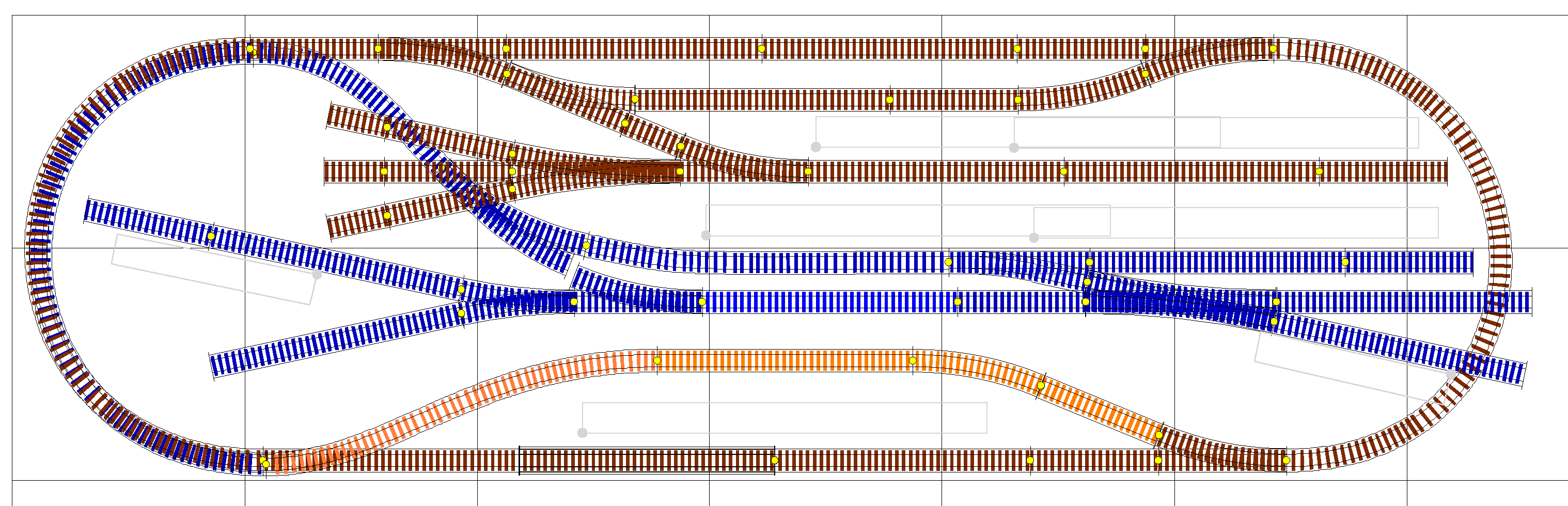 The blue track is on the upper level, the brown on the lower.