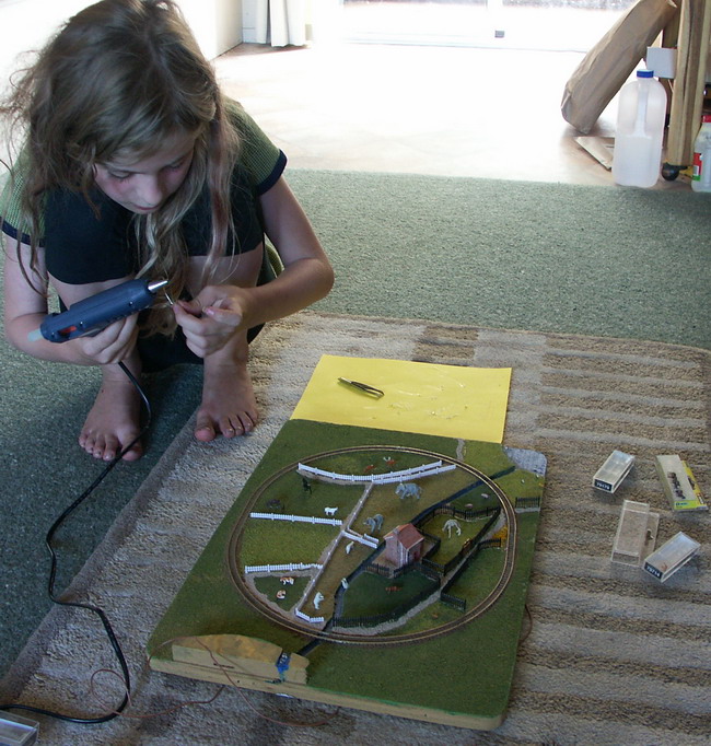 The animals are all stuck down using a hot glue gun. This can look ugly, especially