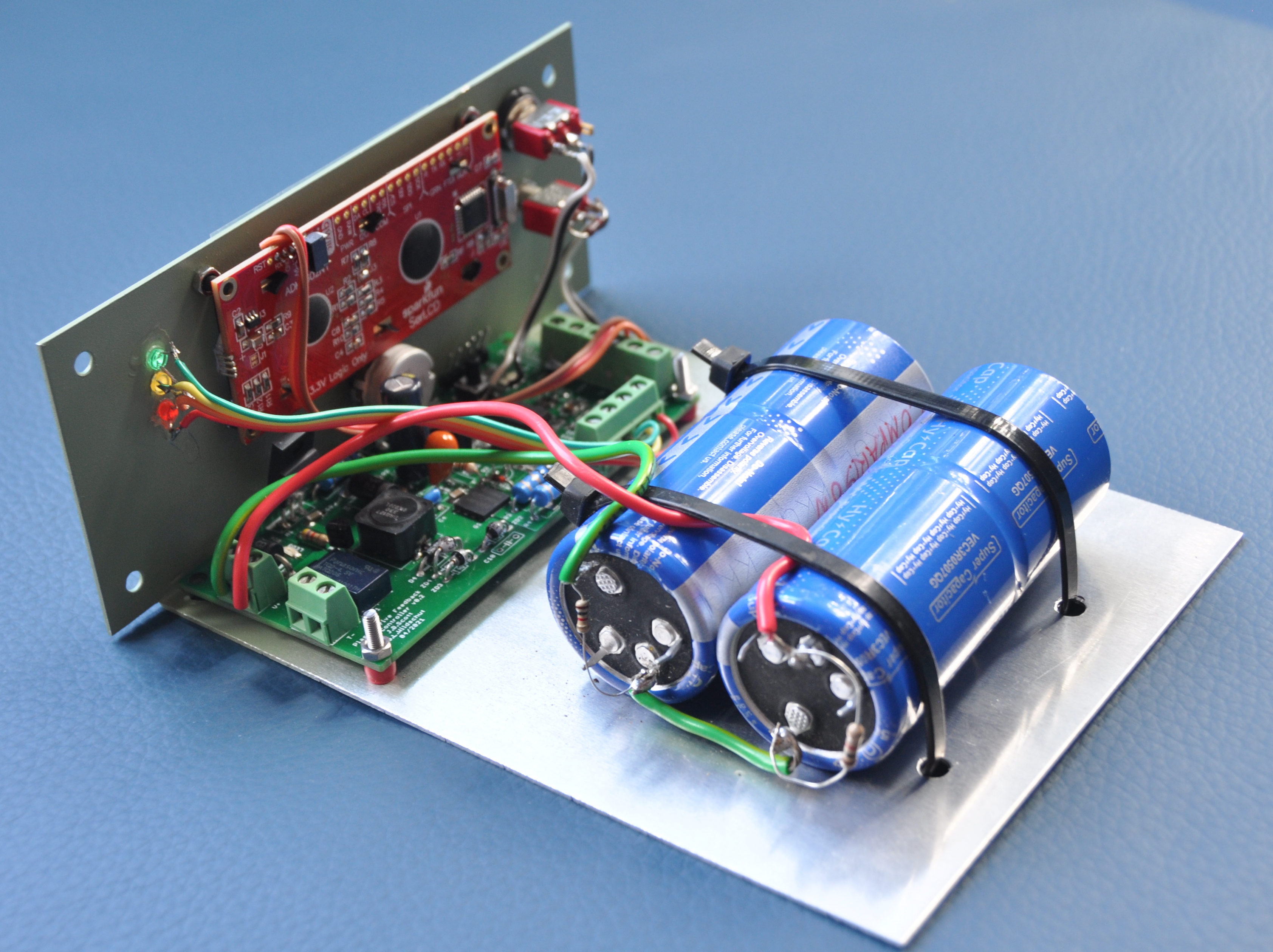 Note the twin 500 Farad capacitors. These store enough energy for about 40 minutes of continuous shunting,