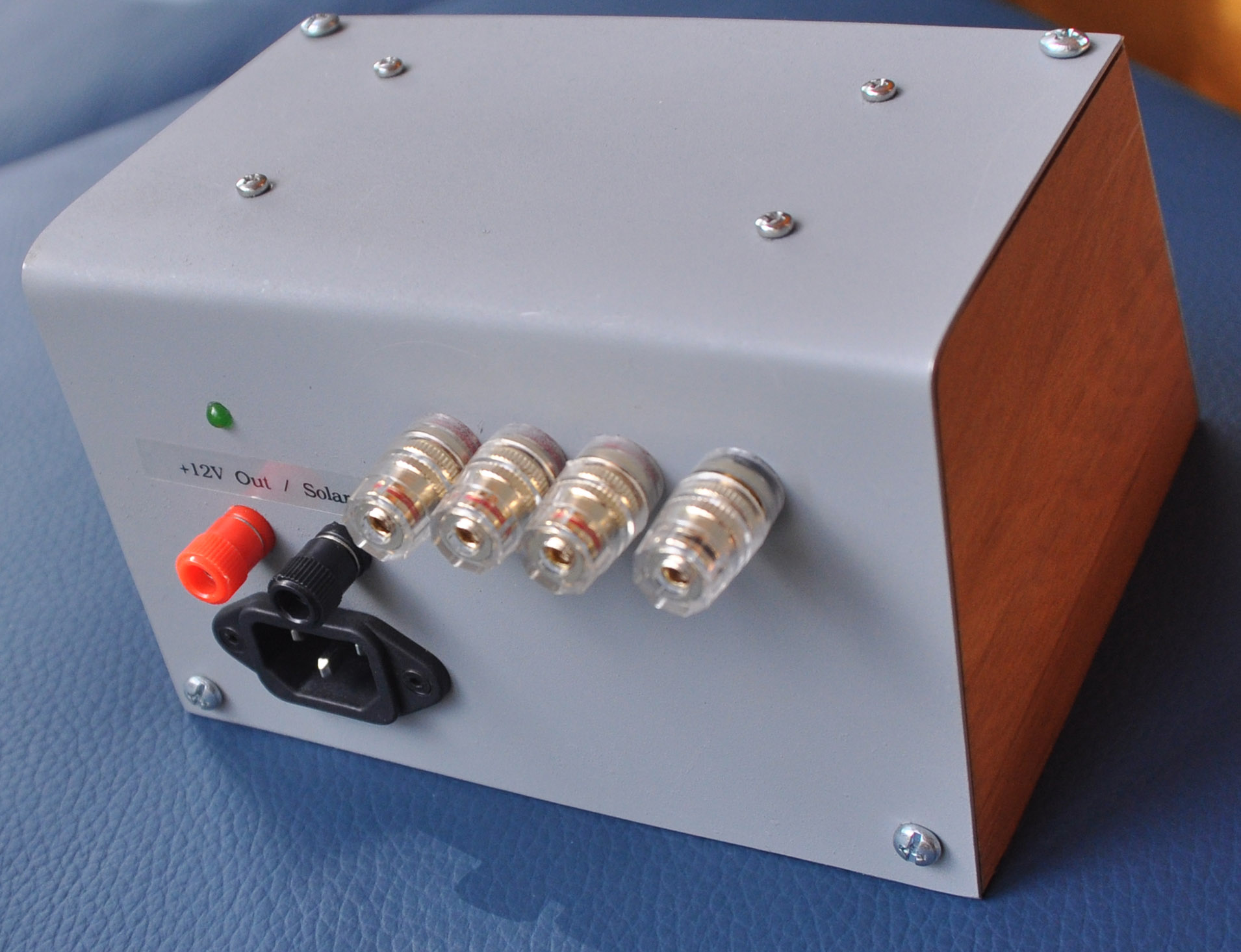 There is a mains power supply, and a set of terminals with an indicator LED for 12V out when mains powered, or